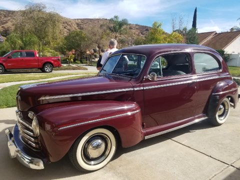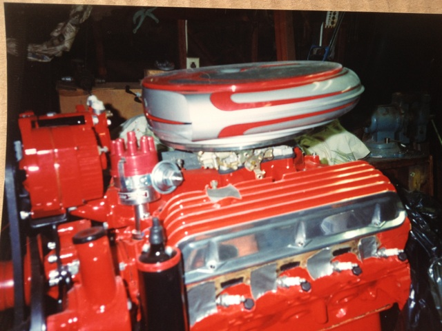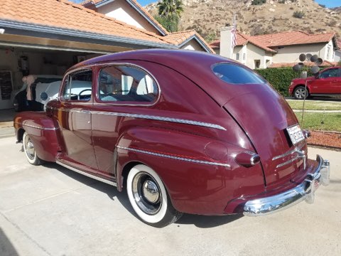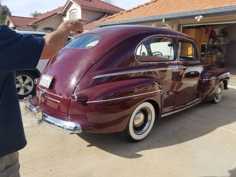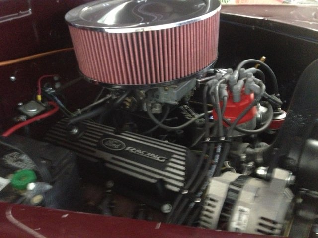 I started with a real clean car, all of the work was done by me in a two-car garage, including installing the engine, trans and rear end, the paint and part of the upholstery. Milo did the seats and head liner.  It has 4 wheel disc brakes, a 302 Ford engine, a C4 transmission and Lincoln disc brake rear end.  All of these parts were ground down smooth before painting.